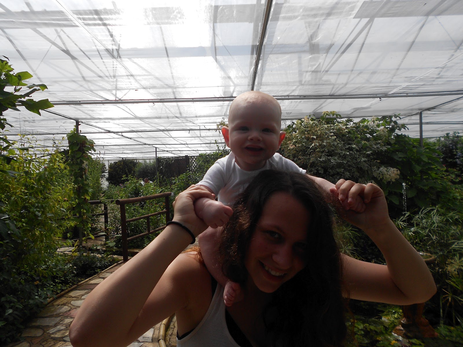| Having fun looking at the butterflies on Mummy's shoulders |